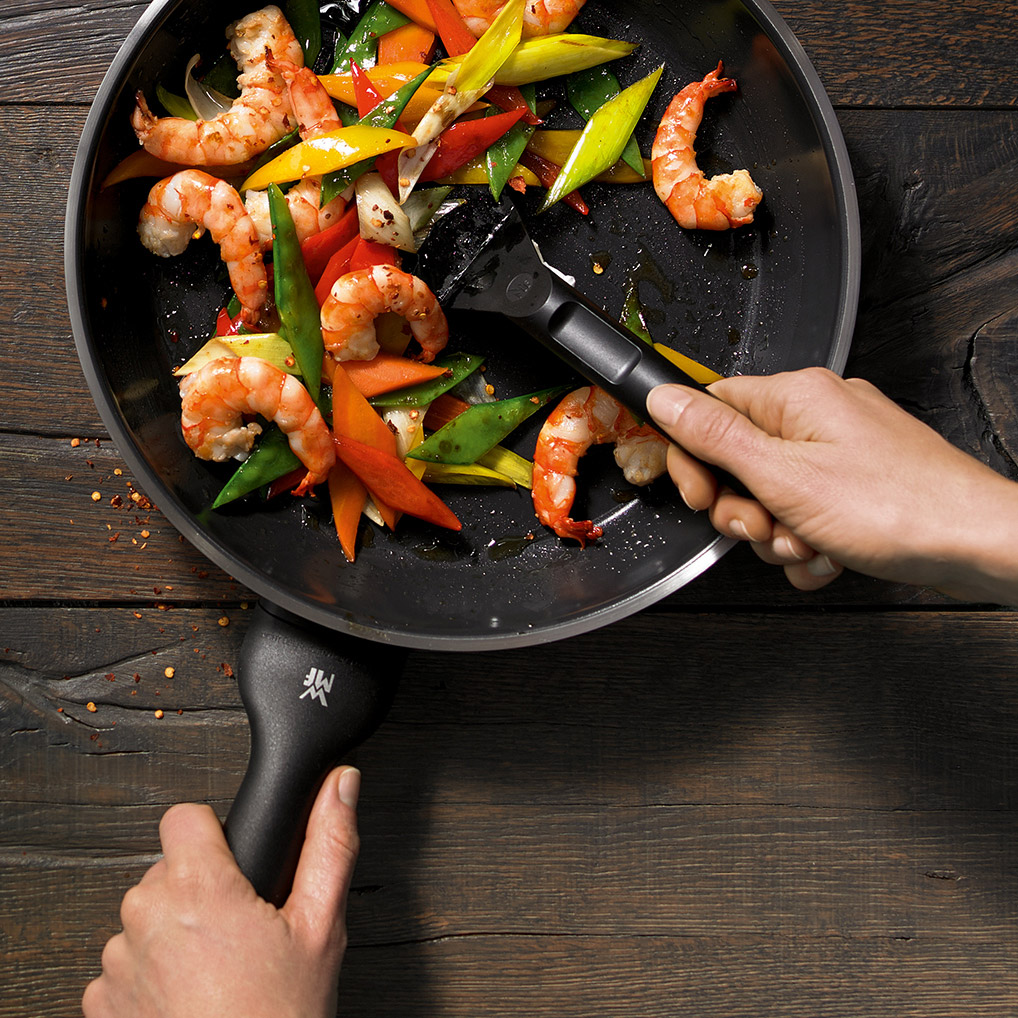 Thức ăn nóng hổi trên chảo với hương thơm bay khắp phòng. Chảo rán WMF là lựa chọn hoàn hảo cho tất cả những người đam mê nấu nướng, dù cho bạn đang chuẩn bị nướng một miếng bít tết thơm ngon hay nấu món rau củ giòn rụm.